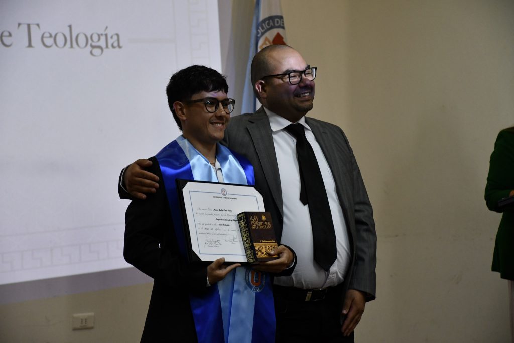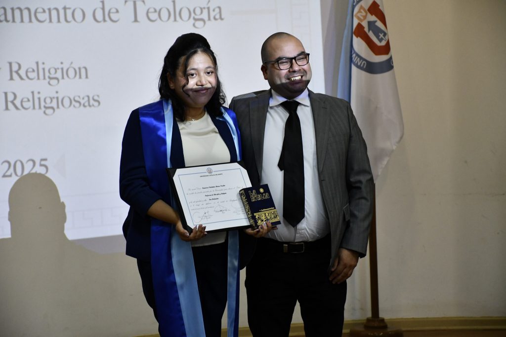 Ocho profesores y profesoras en Pedagogía en Filosofía y Religión y un licenciado en Ciencias Religiosas recibieron su título profesional y licenciatura en una emotiva ceremonia que se realizó en el Salón Arcángel San Rafael del Campus Guayacán de la Universidad Católica del Norte (UCN).