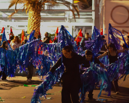 La actividad tuvo lugar en el sector de estacionamientos de la Escuela, lugar que fue transformado por las y los participantes en un espacio de expresión simbólica y comunitaria, en donde se reunieron la Dirección de la Escuela, equipo docente, estudiantes de diferentes cursos, invitados y espectadores de la comunidad universitaria.