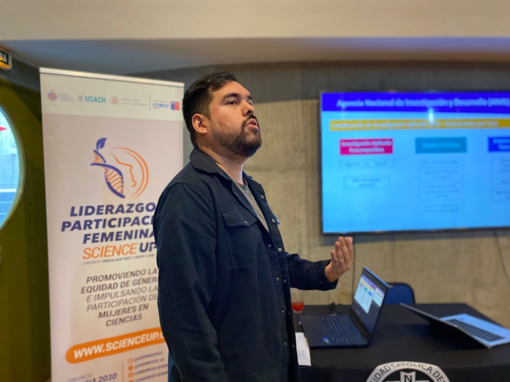 El segundo taller fue dictado por Daniel Troncoso, gestor tecnológico de Vinculación con Entorno Socioeconómico (VESE) de Science Up, quien entregó tips para una postulación a fondos exitosa y, además, proporcionó técnicas para mejorar las presentaciones, buscando fortalecer la comunicación efectiva de las académicas en estos contextos.