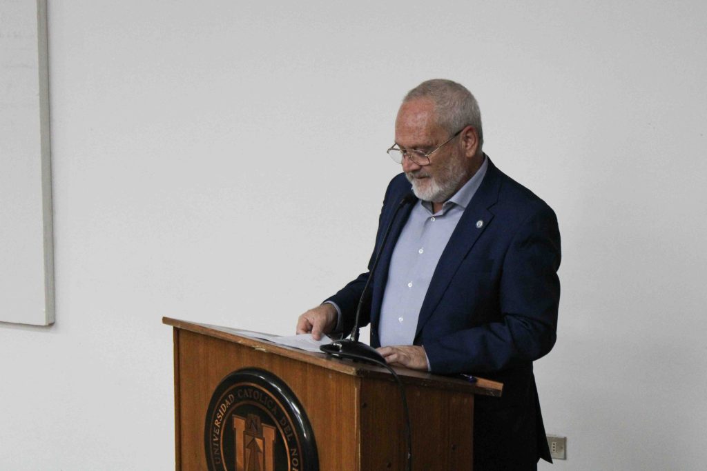 La ceremonia culminó con la conferencia magistral “Del Fuego a los LED, Historia de Iluminación”, presentada por el Dr. Jaime Llanos Silva, académico de la UCN y destacado investigador, quien ofreció un recorrido histórico y científico sobre la evolución de los sistemas de iluminación, desde el descubrimiento y manejo del fuego, la era Pre-Eléctrica, hasta la era Eléctrica y sus conclusiones personales.