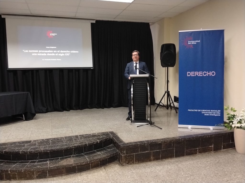 “Las normas procesales en el derecho chileno: una mirada desde el siglo XXI”, fue el tema central de la clase magistral que dictó el secretario general y profesor asociado de la Facultad de Ciencias Jurídicas de la Universidad Católica del Norte (UCN), Dr. Fernando Orellana Torres, durante la inauguración del año académico 2026 de la Escuela de Derecho de la Universidad del Alba, sede Antofagasta.