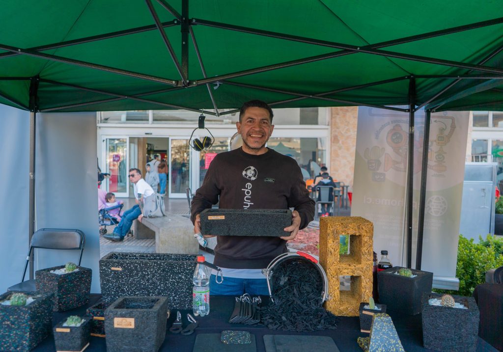 El eje central de la feria estuvo en las mujeres de Tocopilla, quienes viajaron especialmente para mostrar el resultado de un proceso formativo que las capacitó en compostaje, reutilización de residuos y habilidades comunicacionales. Sus propuestas -que incluyeron mobiliario a base de plástico reciclado, bolsos elaborados con material reutilizado y piezas decorativas hechas con cartón y vidrio- reflejaron cómo es posible transformar residuos domiciliarios en soluciones concretas para el desarrollo local.