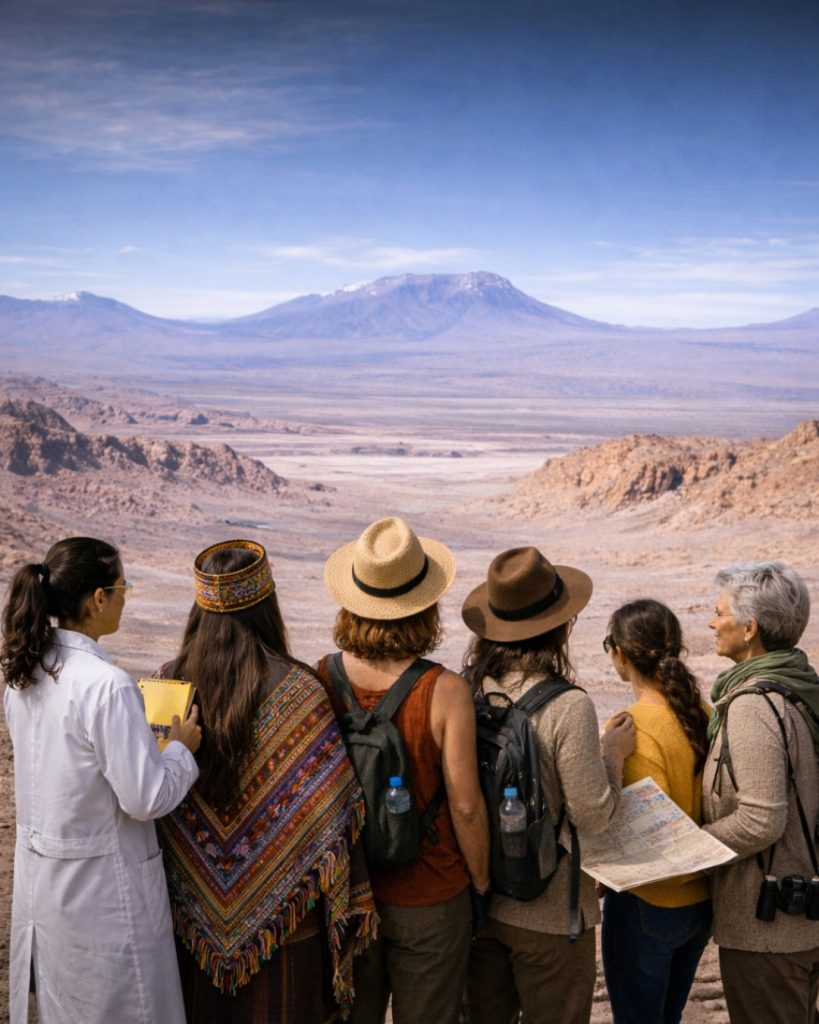 El encuentro se estructuró en torno a la premisa de que el desierto de Atacama es mucho más que un paisaje extremo: es un territorio habitado, narrado y transformado por mujeres desde múltiples disciplinas y tradiciones. Las exposiciones recorrieron desde la investigación geológica y los estudios de ecosistemas marinos costeros, hasta los saberes indígenas de los pueblos lickanantay y diaguita Atacama, el activismo socioambiental, la gestión de recursos naturales a escala internacional y el diseño como práctica territorial.