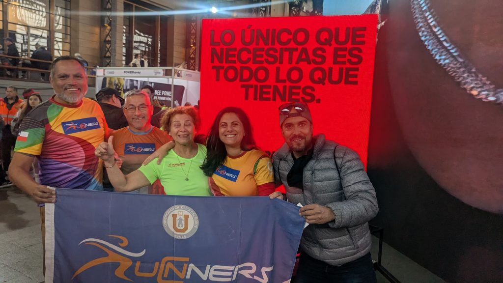 Hace unos días seis integrantes del grupo “Runners UCN” llegaron a la Región Metropolitana para decir presente en la Maratón de Santiago 2025. La delegación compuesta estuvo integrada por Alejandro Cerda, Rodrigo Castillo y Juan Navarrete, del Departamento de Teología; María Ríos, de la Facultad de Medicina; Roberto Garry, del Departamento de Servicios y Obras; Tomás Guzmán, estudiante de Ingeniería Comercial y Yenny Sunkel, Exfuncionaria UCN.