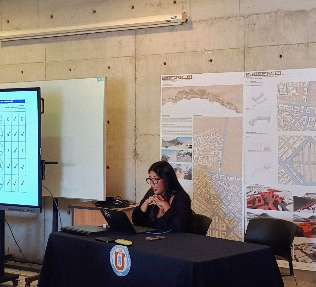 Durante el seminario se presentaron avances de la investigación relacionados con la problemática aluvional en la ciudad de Antofagasta, abordando el análisis de casos de estudio en distintas quebradas del territorio urbano, así como reflexiones sobre el rol del proyecto urbano como herramienta para articular distintas escalas territoriales frente a escenarios de riesgo y cambio climático.