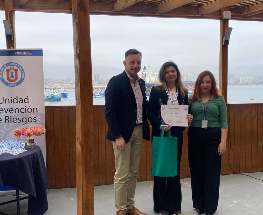 En la ceremonia de inicio de la Semana de la Prevención se premió a funcionarios, funcionarias, unidades y colaboradores. Siendo los premiados: Karla González Martínez, Encargada de Laboratorio de Oceanografía Química, que fue reconocida como Trabajadora Destacada; Mónica Castillo Rosales, Jefa del Centro de Salud Estudiantil e integrante del Consejo VIVE UCN, reconocida por el trabajo de su Unidad Promotora de Bienestar y Salud, y Dennis Bordones Bruna, Ayudante de Laboratorio de Docencia, como Paritario Destacado.