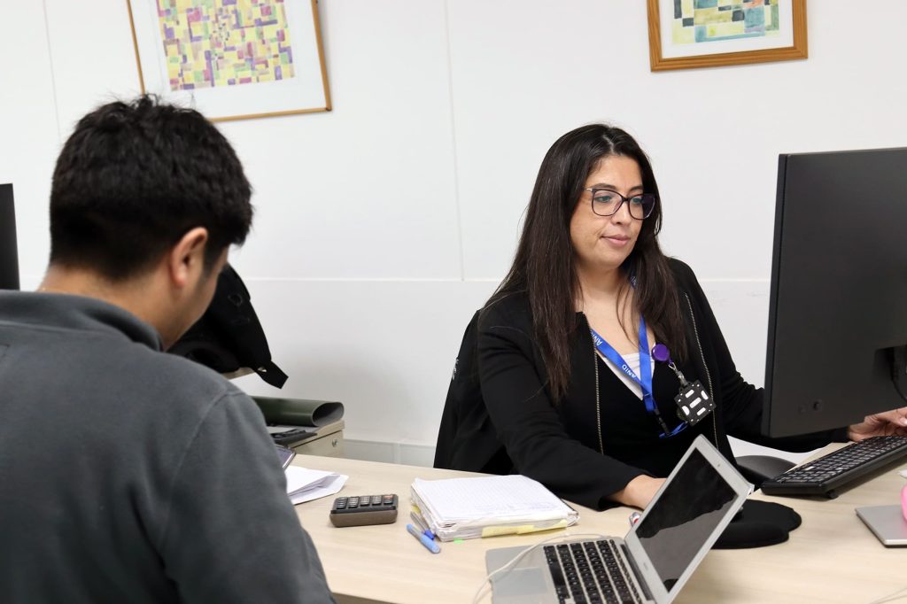 María Inés Mena Quian y Simón Pernia Pernia, ejecutivos de la Unidad de Gestión de Rendiciones de la Subdirección de Áreas Transversales de la ANID, estuvieron a cargo del proceso de regularización en terreno en la UCN en Antofagasta.